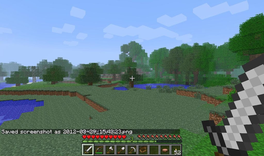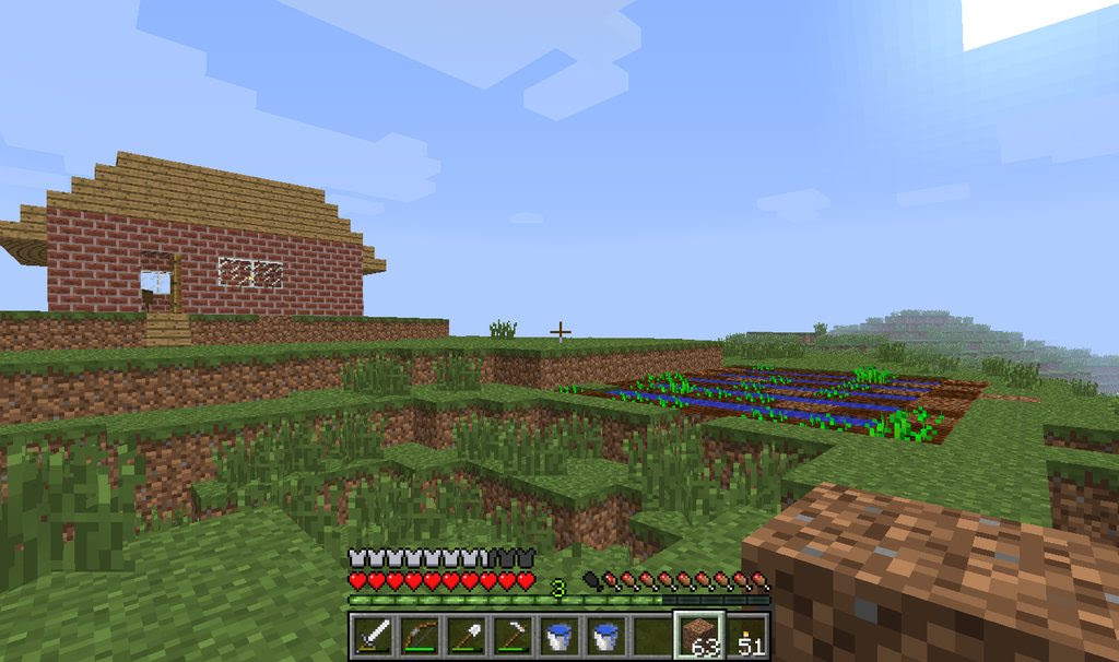 I took the apple and replanted the saplings. It still felt weird to take so much resources from the world after merely passing through it for so long. I was determined to put back whatever I took. While in the forest, I trekked to a small lake tucked under a cliff and mined out enough stone for my house's flooring. Turning around to walk back towards the plateau with my new supply of wood, i could see my half-finished house peaking over the hill. Now it was actually beginning to feel like home.