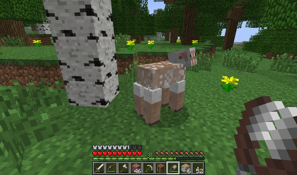 While in the woods, I came across some sheep. I needed wool for something I had refused to craft before now: a bed.