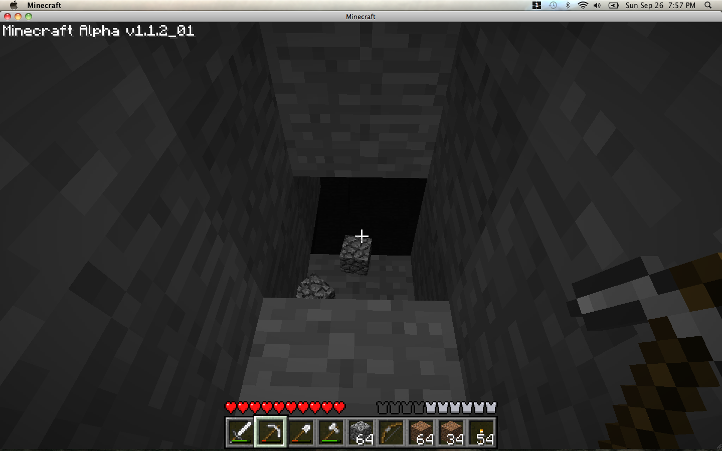 I was eager for the morning. I wanted to explore this canyon and the waterfall. On edge from my uneventful day and exhilarating dusk find, I decided to spend the night mining. I went to the back of my little cave and started going down. I went fine for a while, finding more ore and coal. Then I hit a cavern.