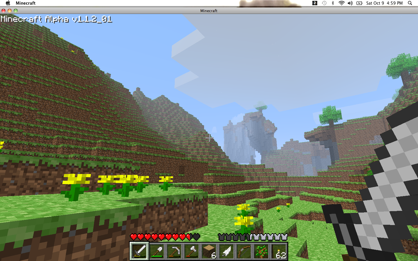 I think I need to stop resting in the base of hills. Monsters keep dropping down onto my camp. Knowing the sun was up high enough to burn zombies and skeletons, I broke away the glass and went outside, slowly and backwards. Sure enough: