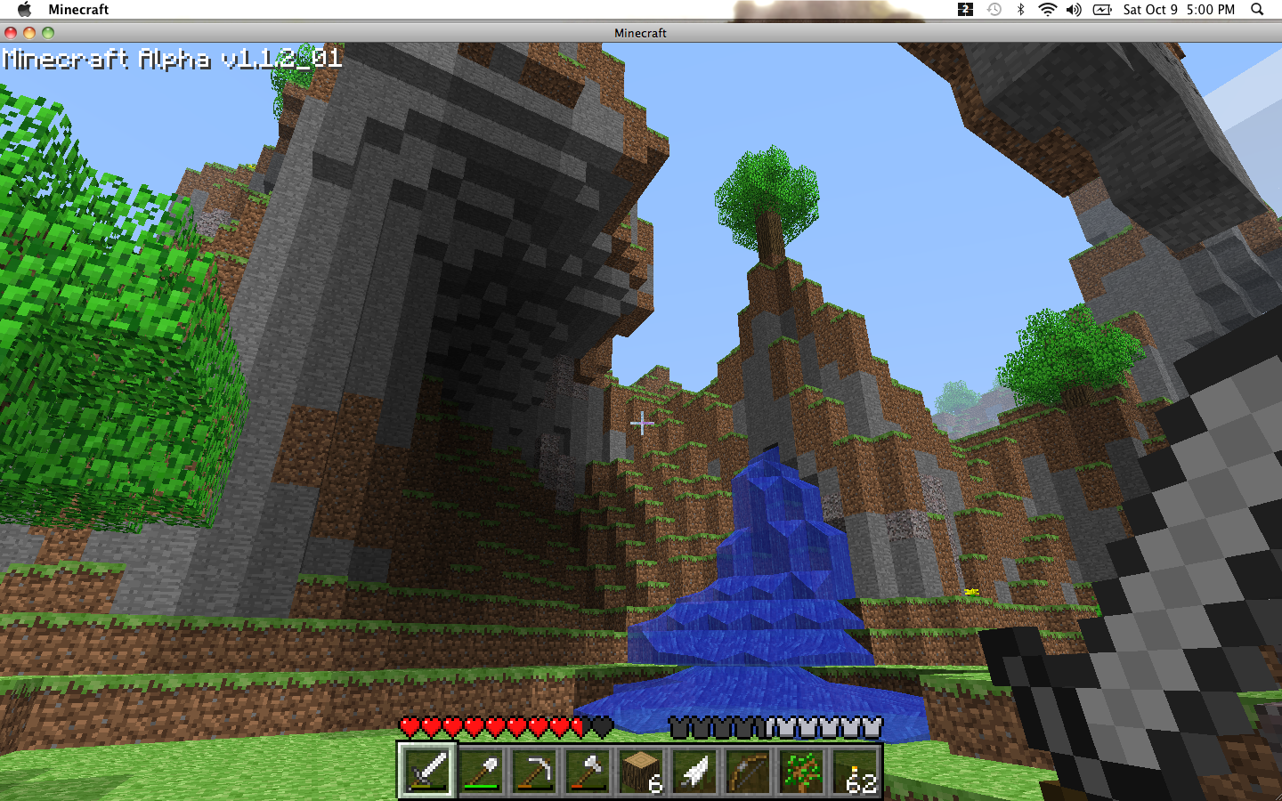For those that missed the comments of the previous post (Day Eighteen, I believe it was), we figured out what these gravel pillars are. When the map spawns gravel as part of an overhang without any stone or dirt beneath them, the gravel falls to the ground and there it sits, and that is where we get the gravel stalagmites (if that is the right word) from. So thanks, Glynn (who actually saw this occur!) for the Minecraft geology lesson!