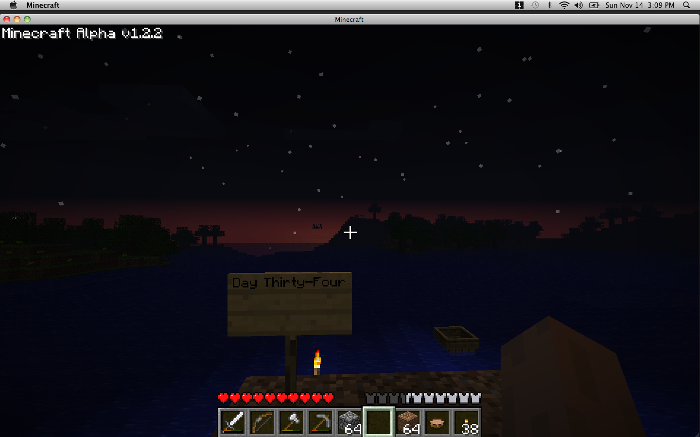 I watched the sun set from atop my tower and waited for the mobs. But just like the previous night, and just like in the dungeon, none spawned. I swear the lack of mobs was freaking me out than the usual presence of mobs! But then I remembered: my younger brothers had been playing Minecraft on my computer the previous day and had turned down the difficulty. I was playing on peaceful! Whoops!