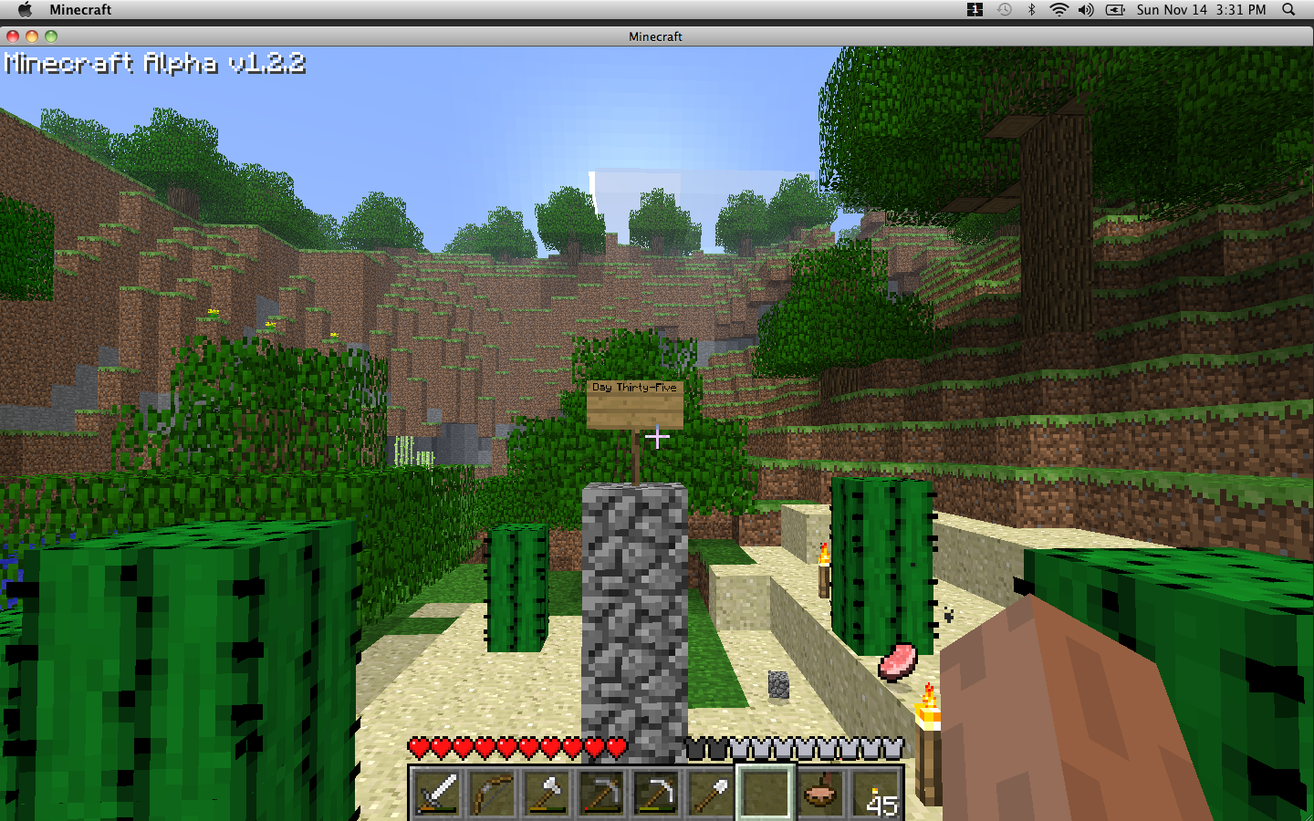I turned the difficulty back to normal, and instantly the zombies, skeletons, creepers, and spiders began to litter the hills and crawl towards my tower. So much for another peaceful night.