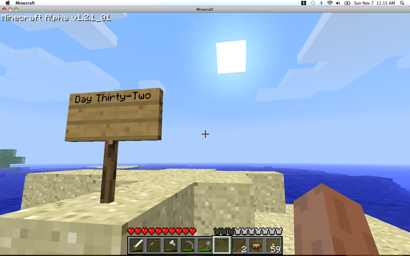 I had what I thought was a clever idea. Instead of breaking the glass, I would dig beneath it and swim out to a safe distance before rising to the surface. The genius of this idea seemed reinforced by the fact that I found a vein of iron just one cube beneath my feet.