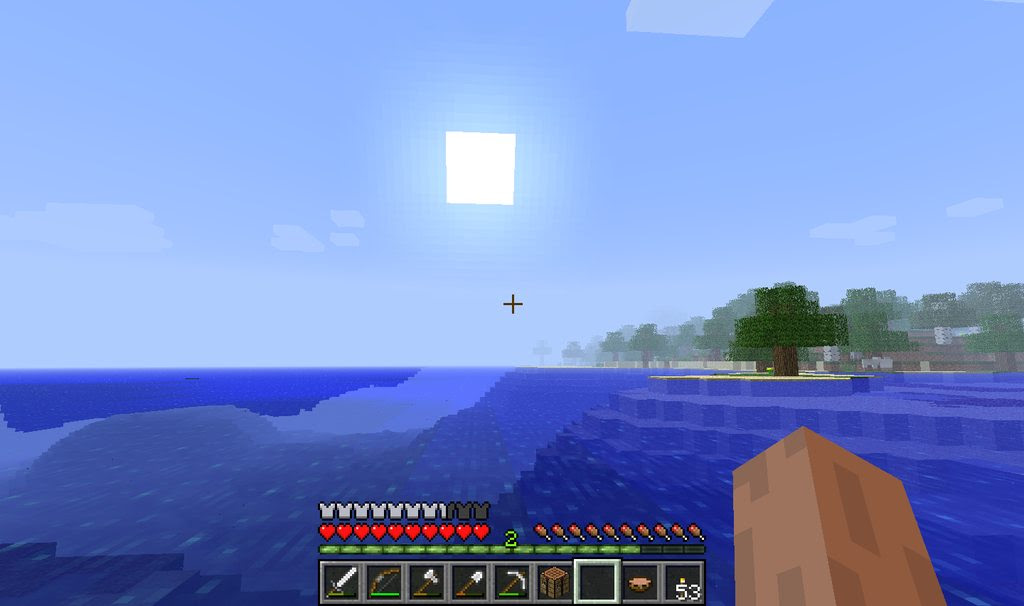 I could hear zombies moaning and skeletons clanking before the moon begun to rise. There must have been a cave not deep below the surface. I built my pillar and, looking down, the island was already infested with mobs. I wondered if I would ever see Dusk again.