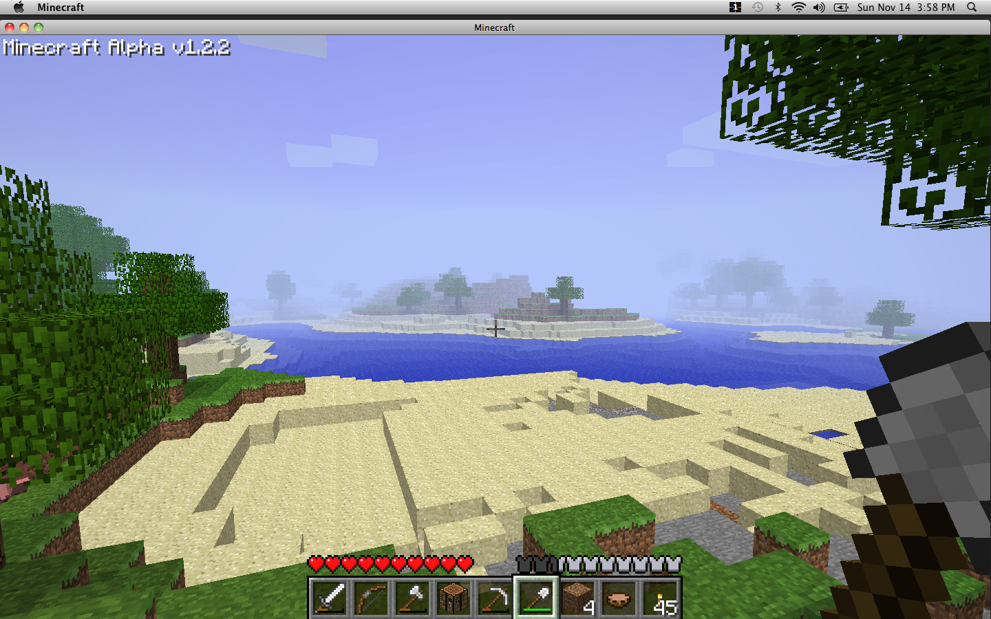 The night passed slowly. I spent what felt like weeks atop my pillar, watching the skeletons and creepers wandering below on the sand. I took a few pot shots to pass the time.